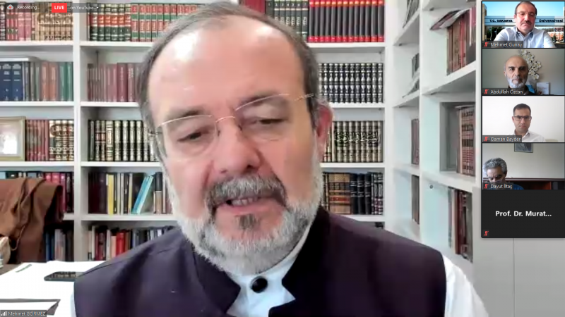Fakültemiz Dekanı Prof. Dr. Ahmet Bostancı da, yaptığı açılış konuşmasında çalıştayın geçtiğimiz yıl yüz yüze yapılmasının planlandığını ancak bütün dünyayı etkisi altına alan salgın sebebiyle yüz yüze yapılması ümit edilerek ileriki bir tarihe ertelendiğini, ancak benzer şartların devam ediyor olması dolayısıyla online olarak gerçekleştirildiğini ifade etti. Mezhep yapılanmasının Müslüman toplumun hukukî istikrar ve dinî yaşayıştaki tutarlılığı gerçekleştirmek maksadıyla geliştirdiği tecrübeyi yansıttığını, bu uygulamanın çok uzun asırlar boyunca herhangi bir farklı düşünce ile karşılaşmaksızın 20. yüzyıla kadar devam ettiğini kaydeden Prof. Dr. Bostancı,1917 tarihli Hukuk-ı Âile Kararnamesinin bu konuda tarihte önemli kırılma noktalarından birini olduğunu, günümüzde de ‘belirli bir mezhebe endeksli’ fıkıh faaliyetinde bulunmak yerine mezhepler arası bir yaklaşım sergilenmekte olduğunu söyledi. Prof. Dr. Bostancı, “Bu çalıştayda bu çerçevede günümüzde geldiğimiz noktada tek mezhepli yaklaşımın mümkün olup olmadığı, fıkhi hükümlerde farklı mezheplerden istifade etmenin bir zaruret mi olduğu hususları Diyanet İşleri Başkanlığının uygulamaları da göz önünde bulundurularak ele alınacaktır. Tertip ettiğimiz bu çalıştayın amacı; tartışmalara sağlıklı bir zemin oluşturulması, konunun akademik seviyede ele alınması ve ülkemizin bu husustaki ilmî birikimin ortaya konulması, nihayetinde de bu birikimin yazılı bir esere dönüşmesidir.” dedi. Dekan Bostancı, çalıştaya katkı sunan katılımcılara, İSAV’dan ve İlahiyat Fakültesi’nden çalıştayın organizesine emek veren hocalara, koordinatörlüğünü yürüten Prof. Dr. Osman Güman’a ve desteklerinden dolayı Rektör Prof. Dr. Fatih Savaşan’a teşekkürlerini ilettikten sonra konuşmasını tamamladı.