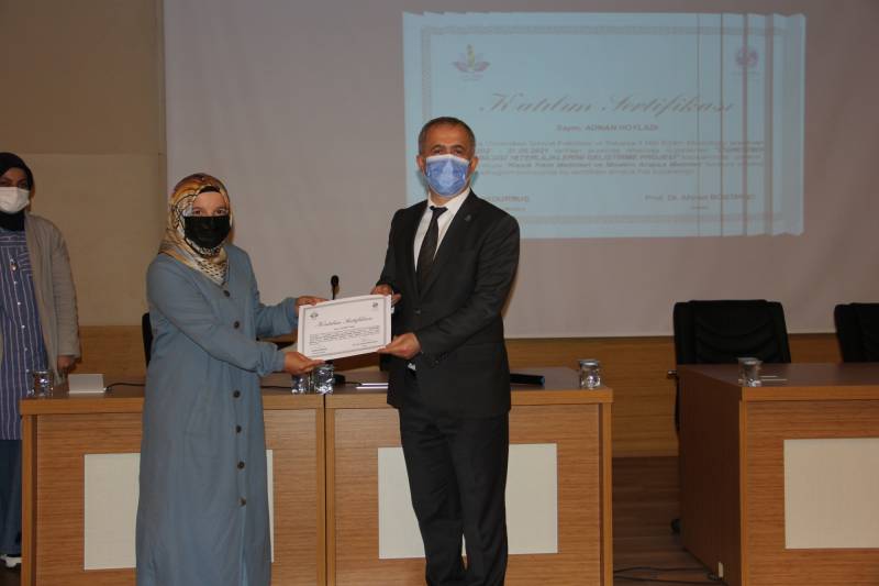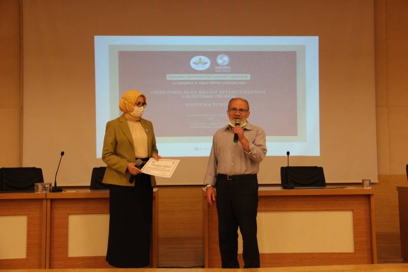 Fakültemiz ve Sakarya İl Milli Eğitim Müdürlüğü iş birliği ile düzenlenen Öğretmen Alan Bilgisi Yeterliliklerini Geliştirme Projesi’nin sertifika töreni 11.06.2021 tarihinde konferans salonumuzda pandemi tedbirlerine uygun şekilde gerçekleştirildi.