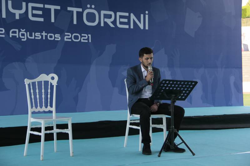 2020 yılı Fakülte birincisi Mehmet Safa Cevahir ve 2021 yılı Fakülte birincisi Muhammet Bahattin Kaya’nın mezunlar adına birer konuşma yaptığı tören, İlahiyat Fakültesinden Arş. Gör. Tahir Çağman’ın solist olduğu tasavvuf musikisi konseri ve son olarak kep atma merasiminin ardından sona erdi.