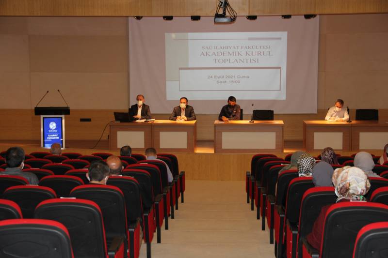 Fakültemiz 2021-2022 Eğitim Öğretim Yılı Akademik Kurul Toplantısı 24 Eylül 2021 Cuma günü Konferans Salonumuzda pandemi tedbirlerine uygun şekilde gerçekleştirildi. Toplantıya Dekanımız Prof. Dr. Ahmet Bostancı, dekan yardımcıları Dr. Öğr. Üyesi Dr. Şükrü Şirin, Dr. Öğr. Üyesi Ahmet Numan Ünver, bölüm başkanları ve akademik personel katıldı.