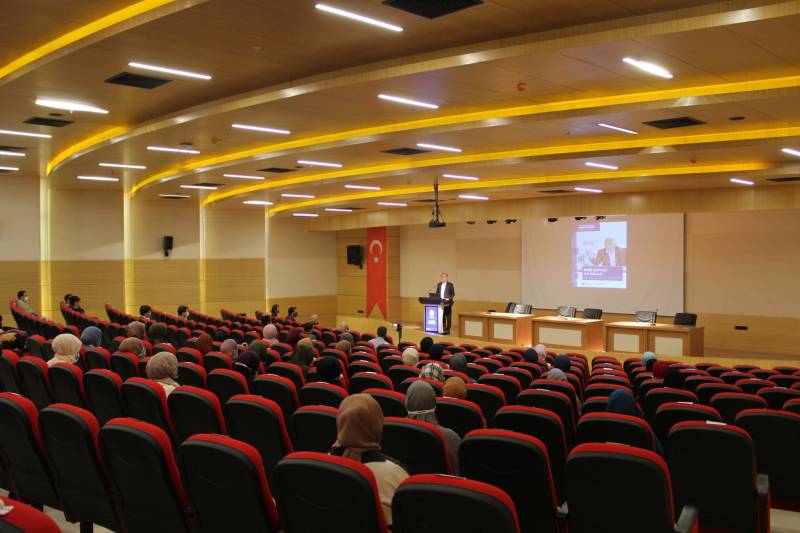 Prof. Dr. İmamoğlu, konuşmasında insanın manevi yönü üzerinde duracağını açıkladı. İnsanın varlıklar içerisinde en değerlisi olduğunu vurgulayan İmamoğlu, insanın bu değerinin farkına varmasının önemli olduğu söyledi. İnsanın beden ve ruhtan oluştuğunu ve ruhun ne olduğunun hala tam olarak bilinemediğini kaydeden İmamoğlu, İslam âlimlerinin ruhla ilgili bazı kanaatlerine yer verdi. İnsanın dinî hayatının farklı yönlerinin ruha bina edildiğini kaydeden İmamoğlu, “Burada dinî hayat devreye giriyor. Bütün dinlerde var olan başlıca dört özelliği dikkate alarak biz insanın hayatını işlemeye başlıyoruz. Bunlar inanç, ibadet, ahlak ve muamelat. Dinlerde en basitinden karmaşığına bunu görüyoruz” dedi.