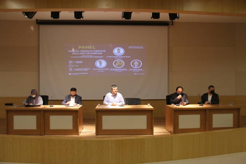 Fakültemizde 13 Ekim 2021 tarihinde “Malezya, Umman ve Türkiye’de Okullarda Din Öğretimi” konulu uluslararası panel gerçekleştirildi. Umman Ankara Büyükelçisi Dr. Qasim Al Salhi, Dekanımız Prof. Dr. Ahmet Bostancı, Öğretim üyeleri ve öğrencilerin katıldığı panelin sunuculuğu Arş. Gör. Furkan Ramazan Öge tarafından yapıldı. Moderatörlüğü Dr. Öğretim Üyesi Abdurrahman Hendek tarafından yürütülen panele fakültemiz Din Eğitimi Anabilim Dalı Başkanı Doç. Dr. Mahmut Zengin, Umman Sultan Qabus Üniversitesi’nden Dr. Maimoona Al Zadgali ve Malezya Malaya Üniversitesi’nden Dr. Ashraf Isyraqi konuşmacı olarak katıldı.