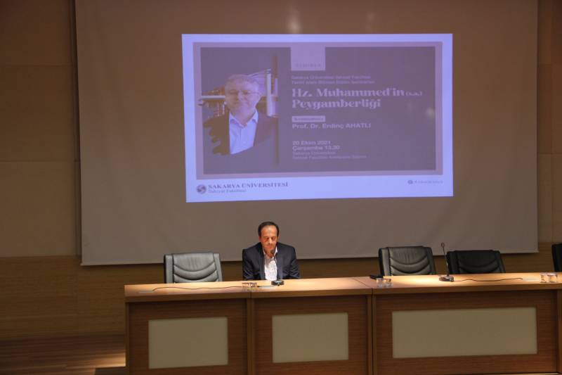 Fakültemiz Temel İslam Bilimleri Bölüm Seminerleri kapsamında Öğretim Üyesi Prof. Dr. Erdinç Ahatlı tarafından “Hz. Muhammed’in (s.a.) Peygamberliği” başlıklı bir seminer gerçekleştirildi.