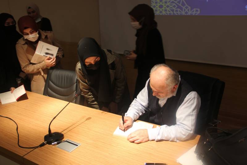 Açılış konuşmalarından sonra sözü alan İhsan Fazlıoğlu, sözlerine Prof. Dr. Ahmet Bostancı’nın şahsında İlahiyat Fakültesi’ne, programın organize edilmesinde emeği olan Doç. Dr. Harun Kuşlu’ya, tüm hocalara ve dışarıdaki güzel havayı farklı faaliyetlerle değerlendirmek yerine zor bir konferansı dinlemeye cesaret eden öğrencilere teşekkür ederek başladı.