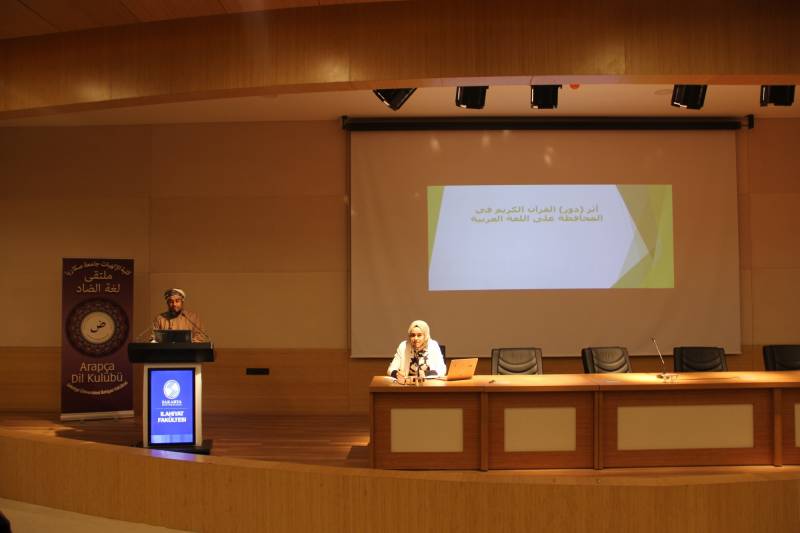 Arapçanın kökeninin bazı araştırmalara göre milattan önce 800’lü yıllara kadar uzandığını vurgulayan Dr. el-Hinâî, Arapçanın dünyada en çok kullanılan dördüncü dil olduğuna dikkat çekti. Bazı örnek sunarak Arapçanın dünya dilleri arasındaki konumundan bahsederek konuşmasını sürdüren Dr. el-Hinnâî, daha sonra Kur’an-ı Kerim’in Arapçayı neden ve nasıl koruduğundan bahsetti.