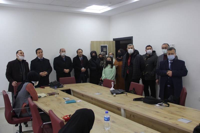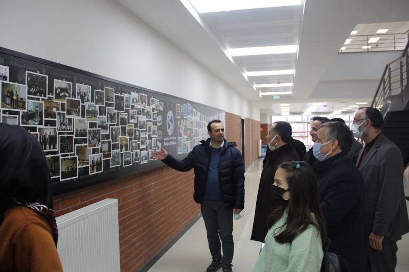 Programda önce fakülte binamız gezildi. Ardından Prof. Dr. Mehmet Erkal Toplantı Salonumuzda bir toplantı gerçekleştirildi. Toplantıda Dekan Yardımcımız Dr. Öğr. Üyesi Şükrü Şirin ve Kalite ve Akreditasyon Kurulu Üyesi Dr. Öğr. Üyesi Ziya Erdinç,Fakültemizin iyi örnekleri ve özgün çalışmaları çerçevesinde; İlahiyatla Eş Zamanlı Hafızlık Projesi, İlahiyat Akademi Projesi, SADEP Projesi, hat, ebru ve mûsikî gibi sanat kursları, yarışmalar (Arapça şiir okuma, bilgi, sportif vb.), fakülte görsel hafızası daimi sergisi, yurt dışı imkanları, öğrencilere yönelik düzenlenen konferans,seminerler vb. etkinlikler hakkında bilgilendirmelerde bulundular.