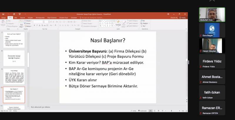 Doç. Dr. Abdullah İNCE (Sakarya Üniversitesi), “SAÜ Üniversite Sanayi İşbirliği Projesi (2547/58-k) Projesi Hazırlama ve Yürütme Deneyimi”