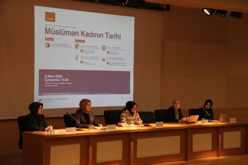 Fakültemizde “Müslüman Kadının Tarihi” konulu panel düzenlendi. Sunuculuğunu Arş. Gör. Furkan Ramazan Öğe’nin, moderatörlüğünü de Doç. Dr. Hülya Terzioğlu’nun yürüttüğü panelde Marmara Üniversitesi İlahiyat Fakültesi’nden Doç. Dr. Nihal Şahin Utku, Fakültemizden Doç. Dr. Esra Atmaca ve Dr. Öğr. Üyesi Feyza Doğruyol ile İstanbul Üniversitesi İlahiyat Fakültesi’nden Dr. Hilal Livaoğlu Mengüç konuşmacı olarak yer aldı. Panele Rektörümüz Prof. Dr. Fatih Savaşan, Dekanımız Prof. Dr. Ahmet Bostancı, fakülte hocaları ve öğrencileri katıldı. Panel, Fakültemizin YouTube kanalından da canlı olarak yayınlandı.
