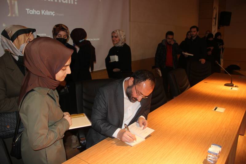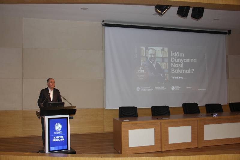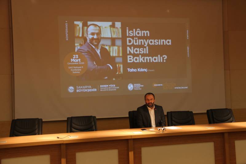 Konuşmasına Prof. Dr. Ahmet Bostancı’nın şahsında İlahiyat Fakültesi’ne ve Sakarya Büyükşehir Belediyesi’ne teşekkür ederek başlayan Taha Kılınç programda konuşulacak birçok şeyin İlahiyat Fakültesi öğrencileriyle ortaklaşa dert ettikleri şeyler olduğunu dile getirdi. İslam dünyasında yaşanan ve genel olarak Müslümanları da üzen bazı etkenler sebebiyle İslam coğrafyası kavramı noktasında olumsuz düşüncelere varıldığını ifade eden Taha Kılınç, coğrafyanın acılarını öne çıkaran bir duyarlılık oluşturma çabasının aslında gençlerin ümitsizliğe kapılmasına sebep olduğuna dikkat çekti.
