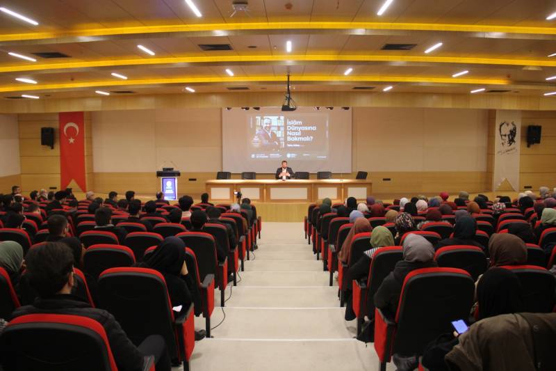 Fakültemiz ve Sakarya Büyükşehir Belediyesi iş birliği ile “İslam Dünyasına Nasıl Bakmalı” konulu bir konferans düzenledi. Yazar Taha Kılınç tarafından konferans salonumuzda verilen konferansa Dekanımız Prof. Dr. Ahmet Bostancı, Dekan Yardımcılarımız Dr. Öğr. Üyesi Şükrü Şirin ve Dr. Öğr. Üyesi Ahmet Numan Ünver, öğretim üyeleri, öğrenciler ve üniversite dışından dinleyiciler katıldı. Öğrencilerin yoğun ilgi gösterdiği konferans YouTube kanalımızda da canlı olarak yayınlandı.