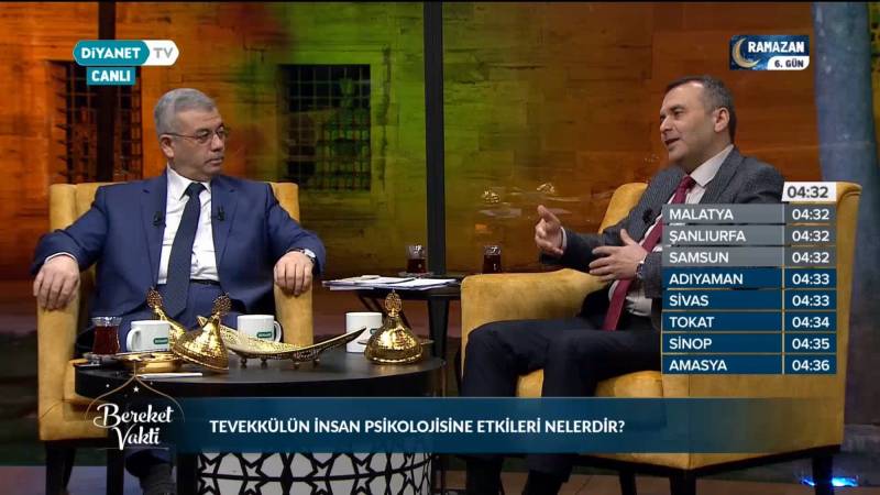 Öğretim Üyelerimizden Doç. Dr. Hasan MEYDAN, 7 Nisan 2022 Perşembe günü Diyanet Tv’de canlı olarak yayınlanan Bereket Vakti Programına konuk oldu. Sunuculuğunu Nur Haktan’ın yaptığı sahur programında “Hakikatli Güven: Tevekkül” konusu dini açıdan ve birey ve topluma bakan yönleriyle ele alındı. Tevekkülü “insanın imandan gelen güven duygusunu hayata uygulaması” olarak tanımlayan Meydan, Tevekkülün birey ve toplum davranışlarına işin başında ve ortasında azim; sonucunda ise rıza olarak yansıdığını, aynı zamanda bu duygunun en zor zamanlarda sükûnet, telaşsızlık ve özgüven olarak görünür olduğunu belirtti. Haktan yana olma, hakkı talep etme ve kendi hakkı olana rıza noktasında birey ve topluma sağladığı kudret ile de tevekkülün ahlaki olgunluk ve kişilik bütünlüğünde önemli bir yerinin olduğunu ifade etti.