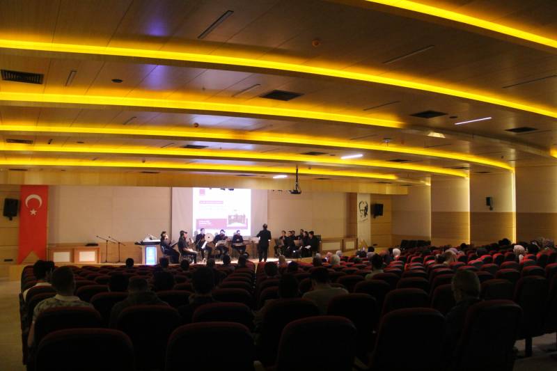 Arş. Gör. Tahir Çağman’ın yönetiminde gerçekleştirilen ve Üniversitemiz Devlet Konservatuvarı Bölümü’nden Prof. Dr. Ferdi Koç (ud), Doç. Dr. Cemal Karabaşoğlu (daire), Öğr. Gör. Tuncay Kardaş (kanun) ve Arş. Gör. Murat Dilber’in (vokal) de eşlik ettiği konserde hicaz ve gerdâniye makamından seçilen birbirinden değerli eserler icra edildi. Programın sonunda ise Arş. Gör. Tahir Çağman, istek üzerine acem-aşiran makamındaki “Elveda bizden sana ey şehr-i rahmet elveda” ilahisini seslendirdi.