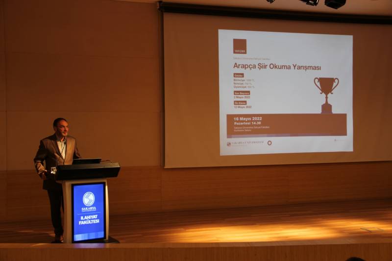 Programın açılışında konuşan Dekan Yardımcımız Dr. Şükrü Şirin, Arapça Şiir Okuma Yarışması’nın geleneksel bir niteliğe büründüğünü, pandemi sebebiyle ara verildiğini, bu yıl itibariyle de tekrar devam edilmeye başlandığını belirtti. Yarışmaya ana dili Arapça olan öğrencilerin de katıldığını hatırlatan Dr. Şükrü Şirin, Arapçayı fakültede öğrenip ana dili Arapça olanlarda birlikte Arapça Şiir Okuma Yarışma ’sına katılmalarının bile tek başına bir başarı olduğunu vurguladı. Tüm yarışmacıları tebrik edip başarılar dileyen Dr. Şükrü Şirin, programda emeği geçen tüm hoca ve öğrencilere teşekkürlerini sunarak konuşmasını sonlandırdı.