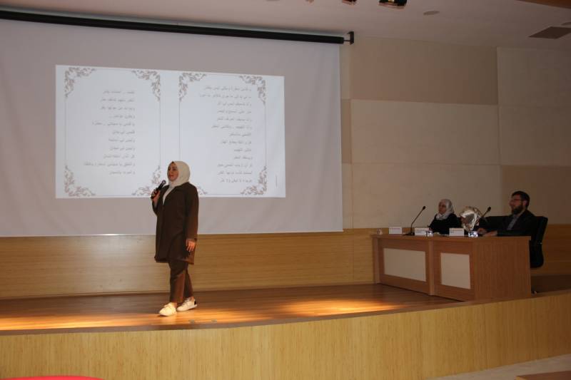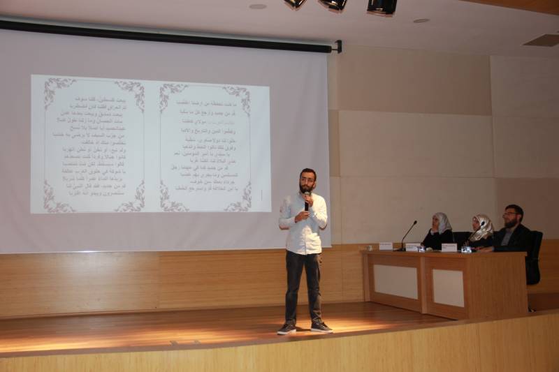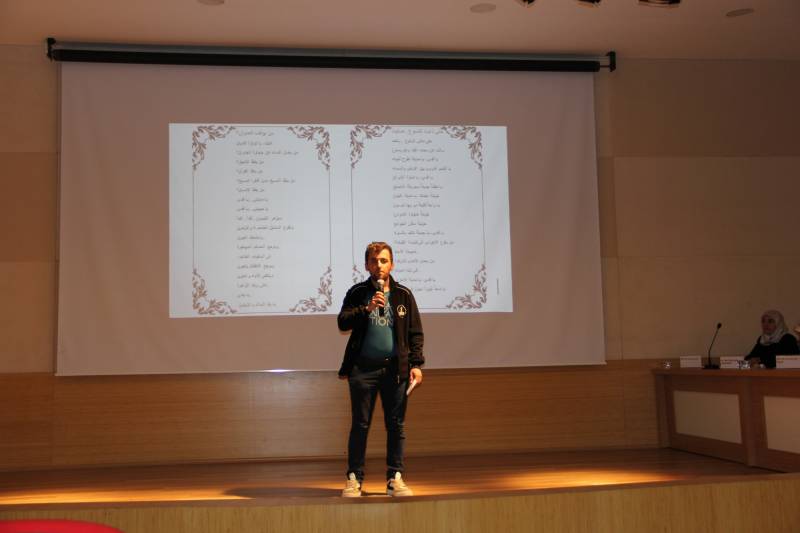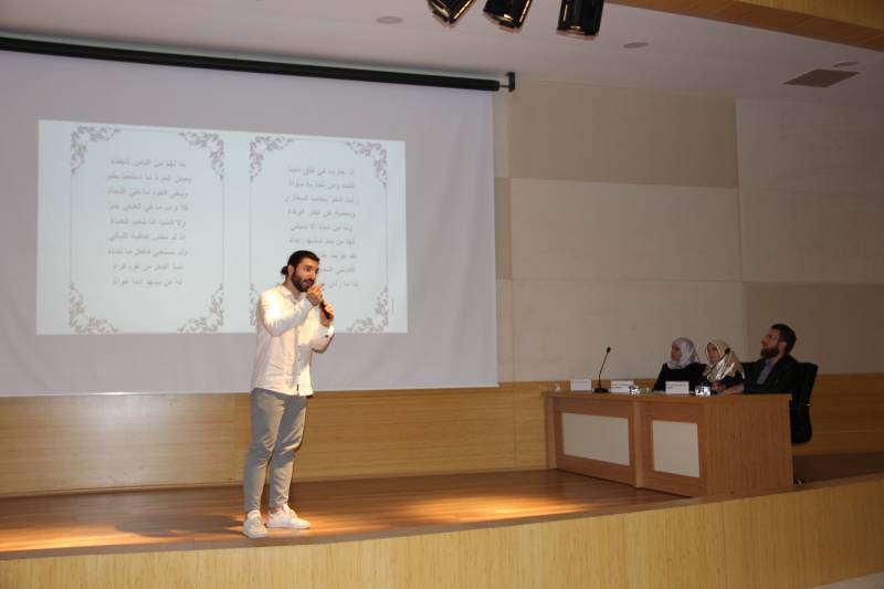 Fakültemiz Arapça Öğrenci Topluluğu’nun (Multeka lugati’d-dat) düzenlediği Arapça Şiir Okuma Yarışması Konferans Salonumuzda gerçekleştirildi. Sunuculuğunu Arş. Gör. Semra Kaya Aitaourı’nin icra ettiği ve Dekan Yardımcımız Dr. Şükrü Şirin, Fakülte hocalarımız ve öğrencilerimizin katıldığı yarışma, YouTube kanalımızdan da canlı olarak yayınlandı.