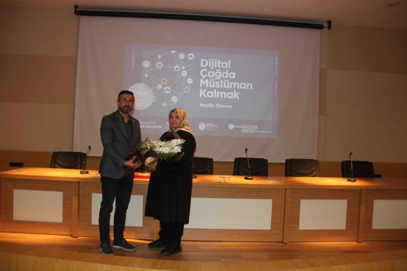 Fakültemiz işbirliği ile Sakarya Büyükşehir Belediyesi Mayıs Ayı Kültür Sanat Etkinlikleri Kapsamında Nazife Şişman tarafından “Dijital Çağda Müslüman Kalmak” konulu bir konferans gerçekleştirildi.