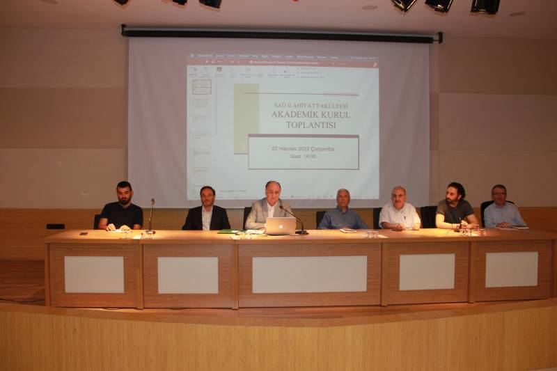 Fakültemiz 2021-2022 Eğitim Öğretim Yılı sonu Akademik Kurul Toplantısı Konferans Salonu’muzda gerçekleştirildi. Toplantıya Dekanımız Prof. Dr. Ahmet Bostancı, Dekan Yardımcılarımız Dr. Öğr. Üyesi Dr. Şükrü Şirin, Dr. Öğr. Üyesi Ahmet Numan Ünver, Bölüm Başkanlarımız ve akademik personel katıldı.