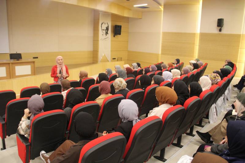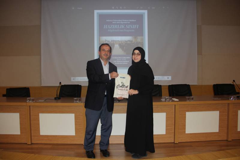 Açılış konuşmalarının ardından Öğr. Gör. Hülya Afacan tarafından hazırlık programında uygulanan kur sistemi ve sınavlar hakkında ayrıntılı bilgiler paylaşıldı.