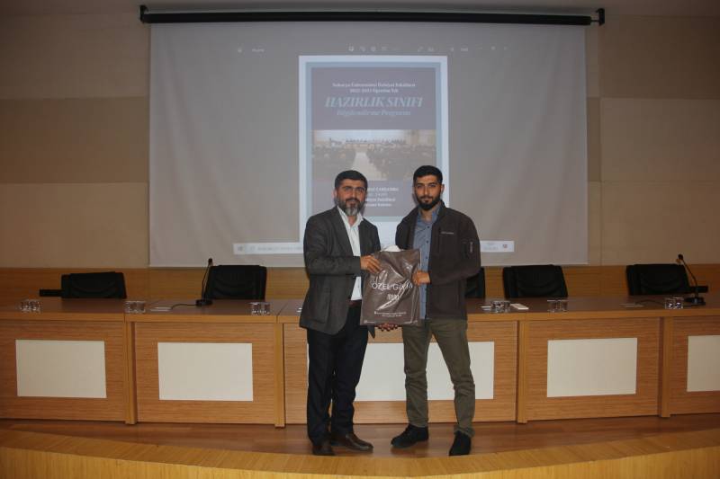 Hazırlık Sınıfları Koordinatörü Doç. Dr. Hamza Ermiş de konuşmasında hazırlık eğitiminin önemi, geçmiş yıllardaki başarı oranları vb. hususlarda bilgilendirme yaptıktan sonra öğrencilere nasıl başarılı olacakları hususunda tavsiyelerde bulundu.