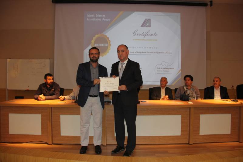 Sözlerinin başında kalite ve akreditasyon çalışmalarına değinen Dekanımız, “İki yıldan fazla bir zamandır sürdürülen akreditasyon çalışmalarımız bildiğiniz üzere başarıyla sonuçlandı ve bu şekilde Türkiye’de ve İslam Aleminde Yüksek Din Öğretimi alanında akreditasyon alan ilk fakülte olduk” dedi. Fakültenin akreditasyon hususunda diğer fakültelere örneklik teşkil ettiğini belirten Dekanımız, çok sayıda fakülteye talepleri üzerine öz değerlendirme raporunu örnek olarak gönderdiklerini söyledi ve Kalite ve Akreditasyon Kurulu başkan ve üyelerine teşekkürlerini iletti.