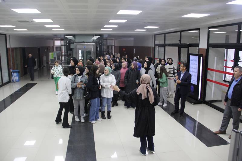 Ereğli Fazlı Erdoğan Kız Anadolu İmam Hatip Lisesi’nden bir grup öğrenci öğretmenleriyle birlikte Fakültemizi ziyaret etti. Arş. Gör. Esra Başak’ın rehberliğinde binamızı gezen öğrencilere konferans salonumuzda tanıtım filmimiz izlettirilip Fakültemiz hakkında bilgi verildi.