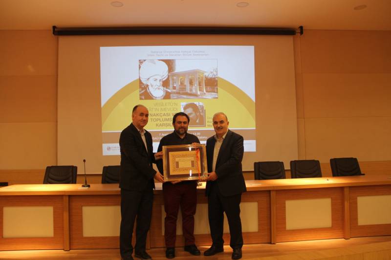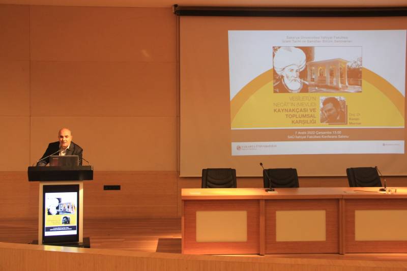 Fakültemizde İslam Tarihi ve Sanatları Bölüm seminerleri kapsamında Doç. Dr. Kenan Mermer tarafından verilen “Vesîletü’n-Necât’ın (Mevlid) Kaynakçası ve Toplumsal Karşılığı” konulu bir seminer gerçekleştirildi.