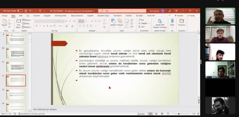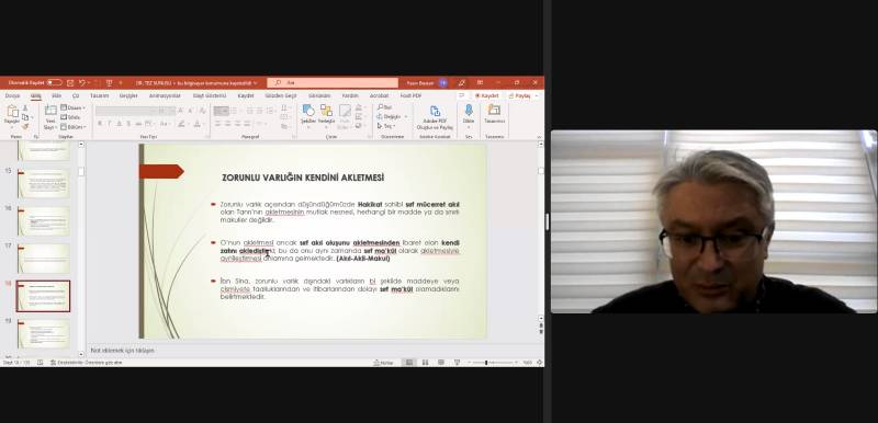 Fakültesimiz Felsefe ve Din Bilimleri Bölüm Seminerleri kapsamında 28 Aralık Çarşamba günü düzenlenen seminerde Pamukkale Üniversitesi İlahiyat Fakültesi İslam Felsefesi Anabilim Dalı’ndan Dr. Arş. Gör. Yasin Bostan konuk edildi. Dr. Bostan, Prof. Dr. Gürbüz Deniz danışmanlığında hazırladığı “İbn Sina ve İbnü’l-Arabi’nin Tanrı Anlayışı ve Mukayesesi,” başlıklı doktora tezinin üçüncü bölümü doğrultusunda “İbn Sina ve İbn Arabi Düşüncesinde Metafiziksel Epistemoloji,” konulu bir sunum gerçekleştirdi. Bölümdeki akademisyenlerin ve öğrencilerin katılım gösterdiği seminer yaklaşık bir buçuk saat sürdü.