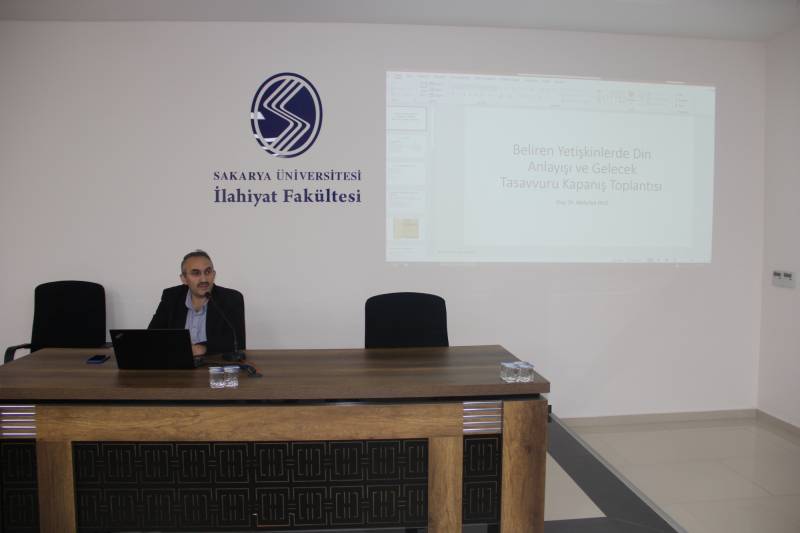 Fakültemiz ve Sakarya İl Müftülüğü tarafından müştereken yürütülen ve yürütücülüğünü Fakülemiz Din Sosyolojisi Anabilim Dalı Başkanı Doç. Dr. Abdullah İnce’nin yaptığı “Beliren Yetişkinlerde Din Anlayışı ve Gelecek Tasavvuru Projesi” çıktılarının sunulduğu toplantı gerçekleştirildi. Toplantıya Dekanımız Prof. Dr. Ahmet Bostancı, Sakarya İl Müftüsü Hasan Başiş, Dekan Yardımcıları, İl Müftü Yardımcıları, bazı ilçe müftüleri, fakülte hocaları, diyanet görevlileri ve proje ekibi katıldı.