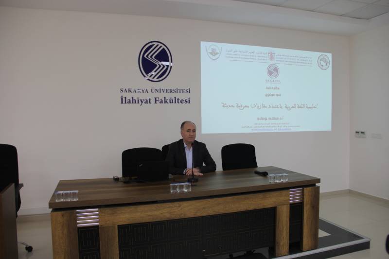 Toplantının selamlama konuşmasını gerçekleştiren Dekanımız Prof. Dr. Ahmet Bostancı, sözlerinin başında yaşanan deprem afetinde vefat edenlere Allah’tan rahmet, yaralılara da acil şifalar diledi. Sakarya Üniversitesi İlahiyat Fakültesi olarak Arapça öğretimine büyük önem verdiklerini, bu konuda yeni gelişmeleri takip ettiklerini ve uzun yıllara dayalı öğretim tecrübesine dayanarak olarak Sirâcu’l-‘Arabiyye adıyla bir Arapça öğretim seti hazırladıklarını vurgulayan Prof. Bostancı, konferansta ele alınacak konunun son derece yararlı olacağını belirtti. Dekan Bostancı, Erasmus + Ders Verme Hareketliliği kapsamında Fakültelerinde bulunan Prof. Dr. Mostafa Bouanani’ye teşekkür ederek sözlerini sonlandırdı.