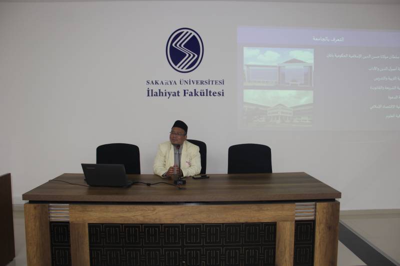 Ziyaret kapsamında Usûlu’d-dîn Fakültesi Dekan Yardımcısı Dr. Aang Saeful tarafından saat 14:00’te Prof. Dr. Mehmet Erkal Toplantı Salonumuzda “Endonezya’da İslam” konulu Arapça bir konferans verildi. Konferansa Dekanımız Prof. Dr. Ahmet Bostancı, Dekan Yardımcılarımız, hocalarımız ve öğrencilerimiz katıldı. Dr. Aang Saeful teşekkür ederek başladığı konferansının başında Endonezya ve Sultan Mevlâna Hasunuddin İslam Üniversitesi hakkında genel bilgiler verdi. Konuşmasının devamında Endonezya’ya İslam’ın nasıl geldiğini anlatan Dr. Aang Saeful, Endonezya halkının yüzde doksanının Müslüman olduğunu ve ülkede hoş görüye dayalı bir İslam anlayışının hâkim olduğunu belirtti.