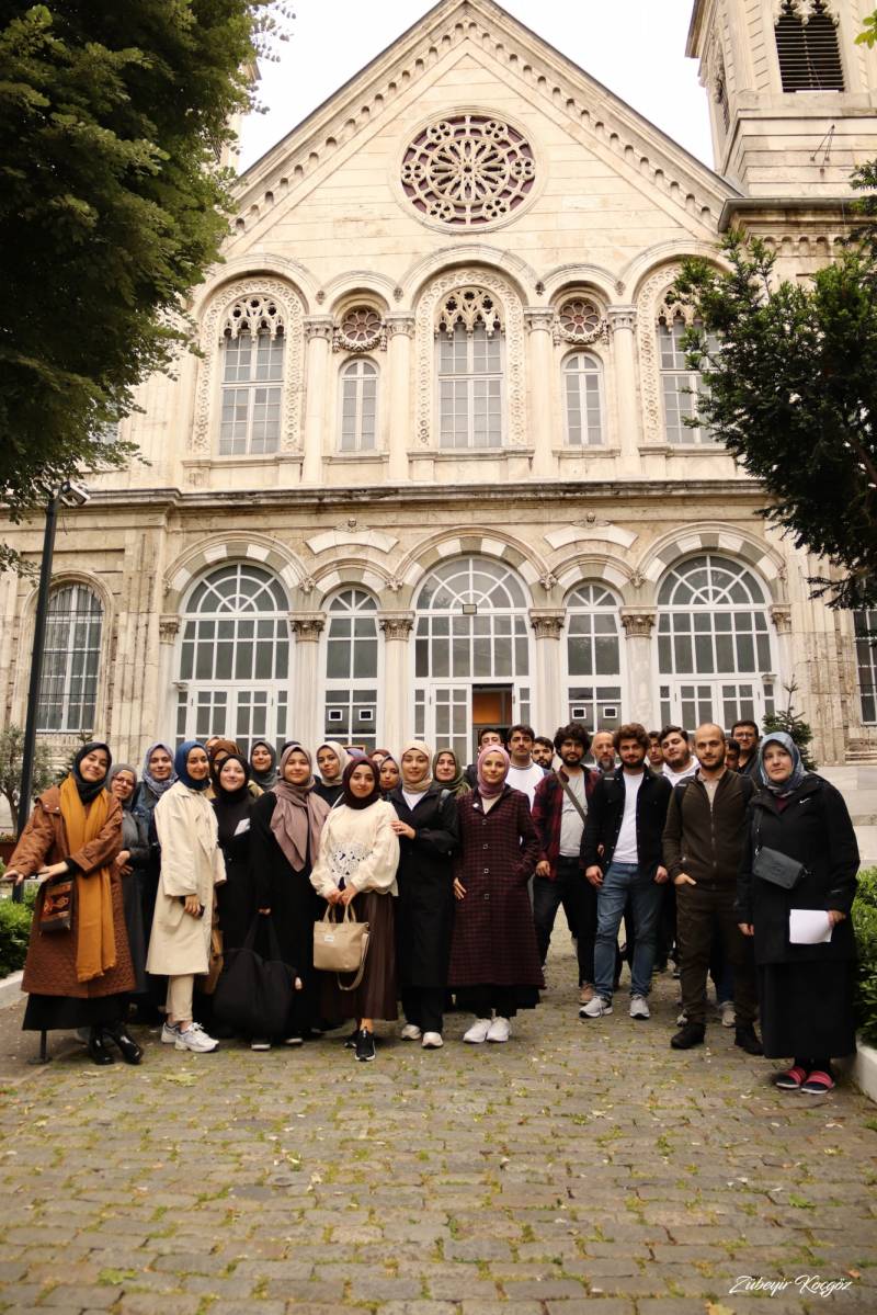Gezinin ilk yarısında Aya Triada Rum Ortodoks Kilisesi, Hüseyin Ağa Camii, St Antuan Kilisesi, Santa Maria Draperis Kilisesi ve Kırım Kilisesi’ni ziyaret eden gruba, Arş. Gör. Dr. Ravza Aydın tarafından bu yapıların tarihi, mimari özellikleri ve dinî sembolleri hakkında bilgi verildi. Günün ikinci yarısında ise Neve Şalom Sinagogu’nu ziyaret eden öğrencilere Hahambaşılık Genel Sekreteri Yusuf Altıntaş tarafından Yahudilik ve içinde bulunulan mabet hakkında bilgi sunuldu. Ardından 500. Yıl Vakfı Türk Musevileri Müzesi ziyaret edildi. Gezi, Sinagog ve müze ziyareti sonrası Karaköy Bankalar caddesine doğru uzanan yürüyüşte Arap Camii’ne yapılan ziyaretin ardından sona erdi.