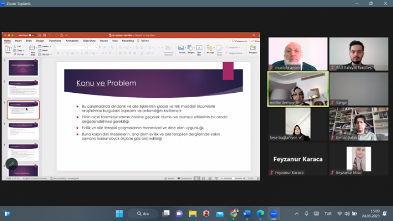 Fakültemiz Felsefe ve Din Bilimleri Bölüm Seminerleri kapsamında İstanbul Ticaret Üniversitesi, İnsan ve Toplum Bilimleri Fakültesi, Psikoloji Anabilim Dalı Dr. Öğretim Üyesi Melike İlerisoy tarafından “Dindarlığın Aile İşlevleri Üzerindeki Etkilerine Yönelik Psikososyal Bir Araştırma” başlıklı bir seminer gerçekleştirildi. Çevrimiçi olarak gerçekleştirilen programa Sakarya Üniversitesi’nden akademisyenler ve öğrenciler katılım gösterdi.