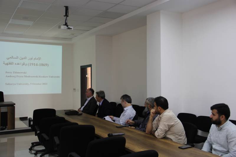 Erasmus + Ders Verme Hareketliliği kapsamında İlahiyat Fakültesi’nde bulunan Prof. Dr. Jerzy Zdanowskı̇ konuşmasının başında kendisine böyle bir fırsat sundukları için Fakülte Dekanı Prof. Dr. Ahmet Bostancı’ya teşekkürlerini iletti. Sunumunu Arapça olarak gerçekleştiren Prof. Dr. Zdanowskı̇, konuşmasının başında özetle İbazîyye’nin tarihine değindikten sonra Ummanlı tarihçi ve fakih Nûruddîn es-Sâlimî (1869-1914) hayatı hakkında bilgi verdi.