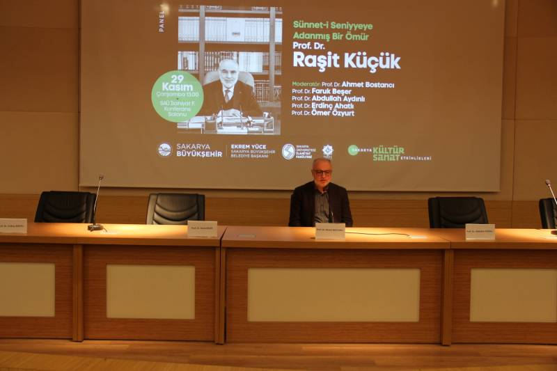 Panelin moderatörlüğünü yapan Dekanımız Prof. Dr. Ahmet Bostancı açılış konuşmasında; hocaları arasında ahlakı, hal ve tavırlarıyla müstesna bir yeri olan Prof. Dr. Raşit Küçük’ün fakültelerinde anılıyor olmasından dolayı memnuniyet duyduğunu belirtti. Dekan Bostancı, programı ortak gerçekleştirdikleri Sakarya Büyükşehir Belediyesi’ne ve Belediye Başkanı Ekrem Yüce’ye, programa katılanlara hediye edilen kitapları temin eden Üsküdar Belediye Başkanı Hilmi Türkmen’e, paneli organize eden Prof. Dr. Hayati Yılmaz’a, gösterilen slaytı seslendiren Doç. Dr. Şükrü Şirin, metnini yazan Prof. Dr. Cağfer Karadaş ve hazırlayan Öğr. Gör. Dr. Seyfettin Haruni’ye teşekkürlerini iletti.