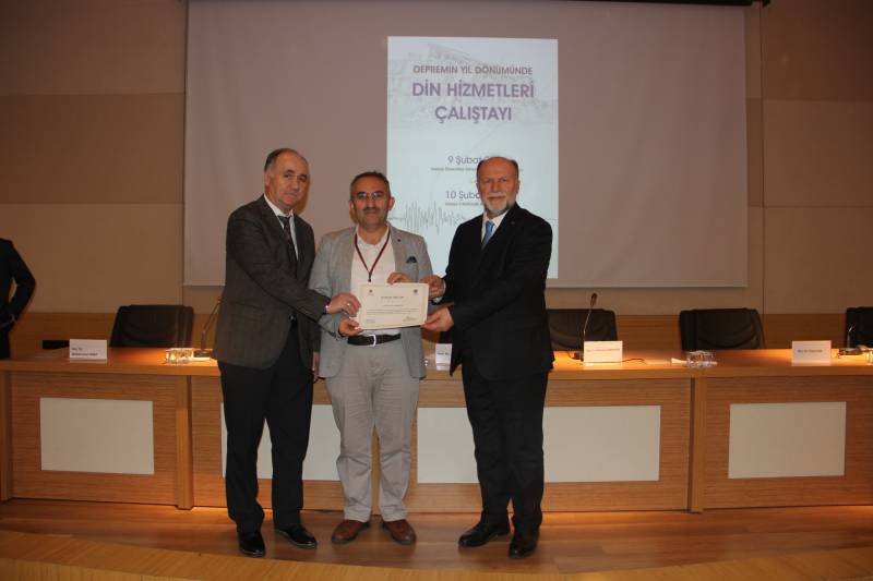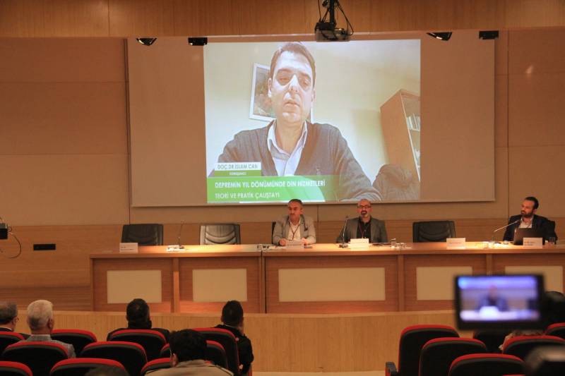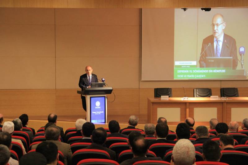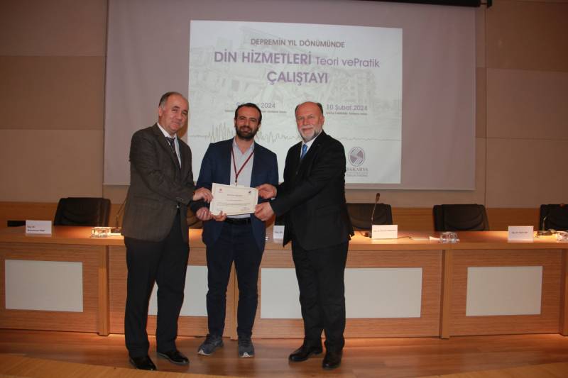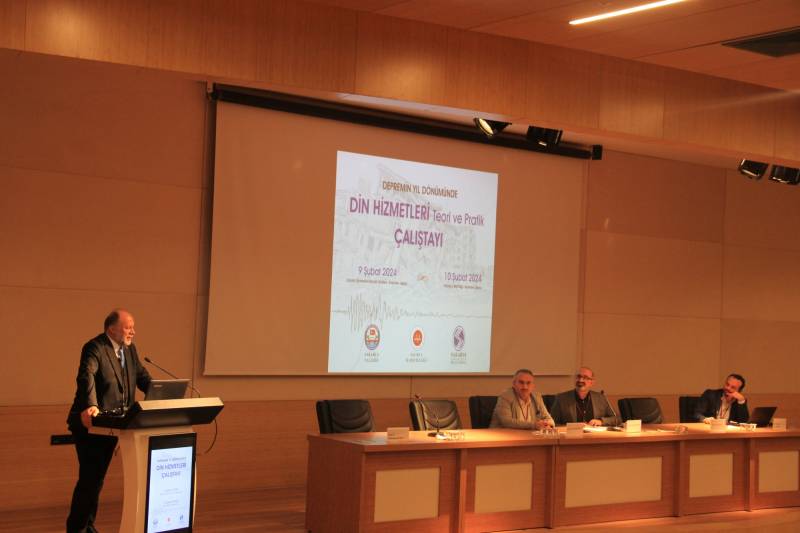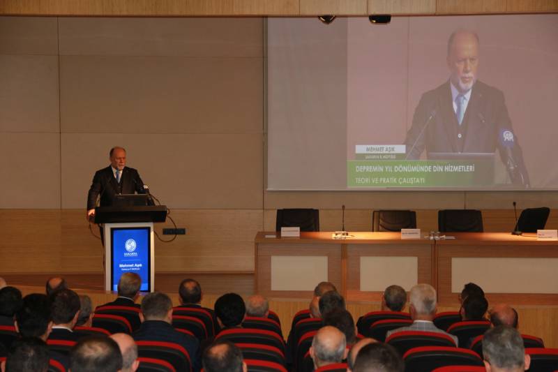 Sakarya İl Müftüsü Mehmet Aşık ise konuşmasında Diyanet İşleri Başkanlığı ve Türkiye Diyanet Vakfı’nın deprem bölgesinde yaptığı faaliyetler hakkında bilgiler aktardı verdi ve depremin ardından görev aldığı Hatay’daki tecrübelerini aktardı. “Devlet millet dayanışmasının en bariz net örneğini orada gördük” diyen Müftü Aşık, konuşmasının sonunda çalıştaya katkı sağlayan kişi ve kurumlara teşekkür etti.