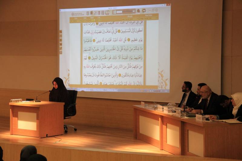 DİB Mushafları İnceleme ve Kıraat Kurulu Başkanı Dr. Hafız Osman Şahin ise konuşmasında bu sene hafızlık yarışmasını sadece kız öğrenciler arasında yaptıklarını, önümüzdeki yıl erkek öğrenciler arasında da yapmayı planladıklarını ifade etti. Bu tür yarışmaların, Kur’ân Kurslarında ya da İmam Hatip Okullarında hafızlığını bitirmiş öğrencilerin fakülteye devam ettiklerinde hafızlıklarını kaybetmemeleri ve unutmamaları için teşvik amacıyla yapıldığını belirten Dr. Şahin, konuşmasında Kur’ân-ı Kerîm’in lafzını okumanın ve ezberlemenin yanında, onun manasını anlamanın ve ahkamıyla amel etmenin her müminin temel görevi olduğunu söyledi. Konuşmasının devamında DİB Mushafları İnceleme ve Kıraat Kurulu’nun görev alanı ve yaptığı faaliyetler hakkında bilgi veren Dr. Şahin, Kur’ân-ı Kerîm’in hıfzının önemi üzerinde durduktan sonra sözlerini tamamladı.