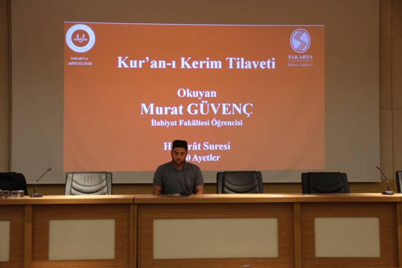 Fakültemiz öğrencisi Murat Güvenç’in Kur’an tilavetiyle başlayan ve sunuculuğunu Sakarya Müftülüğü Şube Müdürü Cengiz Oruç’un yaptığı konferansın açılışında Sakarya İl Müftü Yardımcısı Dr. Caner Akdemir bir konuşma yaptı. Dr. İbrahim Zeyd Gerçik’ten daha önce bir seminer dizisinde istifade ettiklerini dile getiren Dr. Caner Akdemir, konuşmacının anlatacaklarının çok önemli ve kıymetli olduğunu vurguladı.