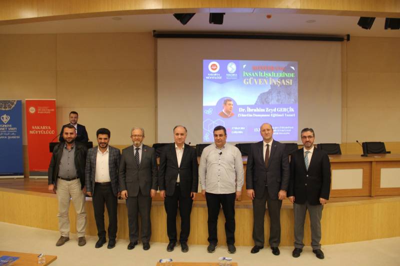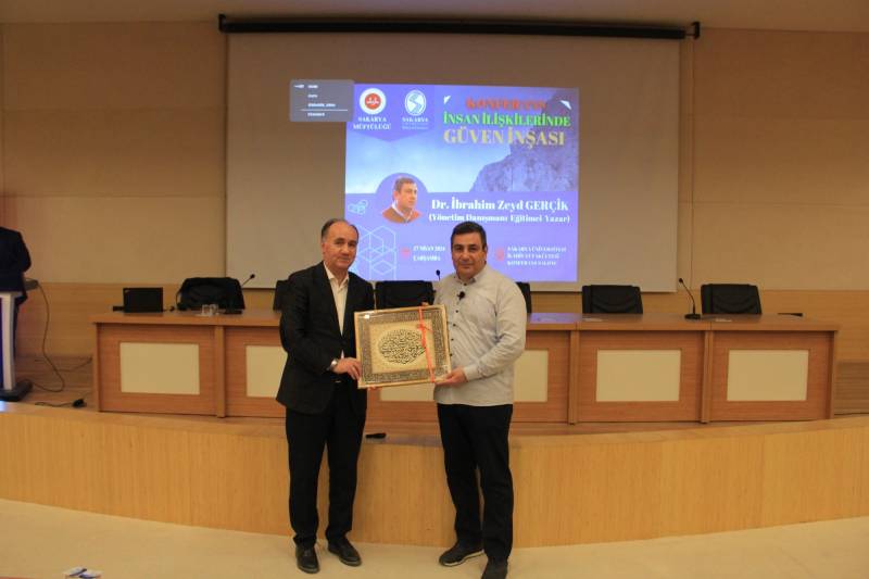 Fakültemiz ve Sakarya Müftülüğü’nün müştereken düzenlediği ve Yönetim Danışmanı-Eğitimci–Yazar Dr. İbrahim Zeyd Gerçik’in konuşmacı olduğu “İnsan İlişkilerinde Güven İnşası” konulu konferans, Konferans Salonumuzda gerçekleştirildi. Ferizli Kaymakamı Hasan Balcı, Dekanımız Prof. Dr. Ahmet Bostancı, Sakarya İl Müftü Yardımcısı Dr. Caner Akdemir, fakülte hocaları ve ilçe müftülerinin katılımıyla gerçekleşen konferansa fakülte öğrencileri ve diyanet personeli de yoğun ilgi gösterdi. Konferansa ayrıca Adapazarı Vali Mustafa Büyük Kız Anadolu İmam-Hatip Lisesi’nden bir grup öğrenci de öğretmenleriyle birlikte dinleyici olarak katıldı.