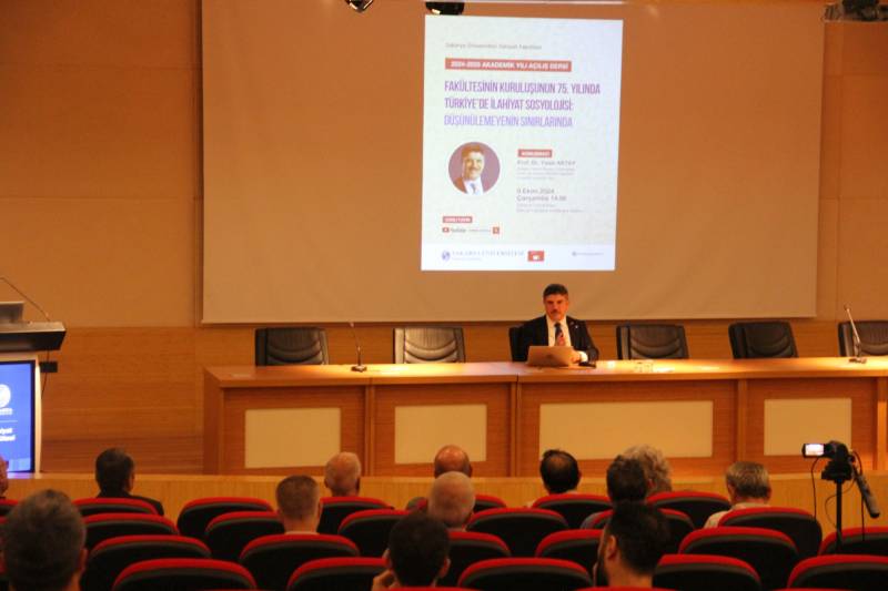 Fakültemiz 2024-2025 akademik yılı açılış dersi, Ankara Yıldırım Beyazıt Üniversitesi Öğretim Üyesi Prof. Dr. Yasin Aktay tarafından “Fakültesinin Kuruluşunun 75. Yılında Türkiye’de İlahiyat Sosyolojisi: Düşünülemeyenin Sınırlarında” başlığıyla gerçekleştirildi.
