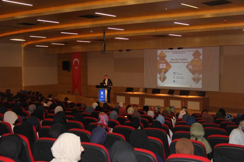 Fakültemiz 2024-2025 öğretim yılı Hazırlık Sınıfları Bilgilendirme Programı Konferans Salonumuzda 11 Ekim 2024 Cuma günü gerçekleştirildi. Kur’ân-ı Kerîm tilavetiyle başlayan programın açılış konuşmalarını Fakültemiz Dekanı Prof. Dr. Hasan Meydan ve Hazırlık Sınıfları Koordinatörü Doç. Dr. Hamza Ermiş yaptı.