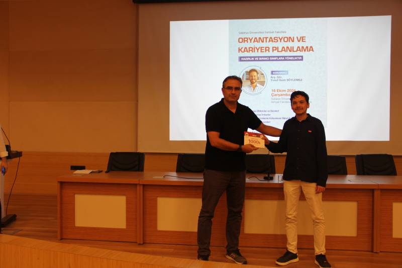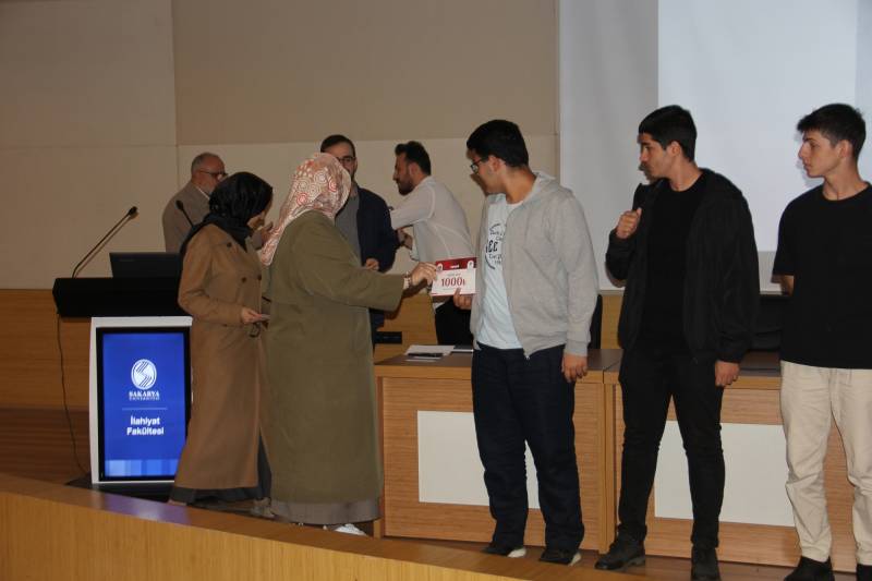 Program, fakültemizi tercih eden öğrencilerden Yükseköğretim Kurumları Sınavı (YKS)’nda en iyi sıralamaya sahip olan 10 öğrenciye verilen “Kitap Bursu” ile başladı. Öğrencilerimize hediyeleri; Dekanımız Prof. Dr. Hasan MEYDAN, Dekan yardımcılarımız Doç. Dr. Muhammet Ali Bağır, Dr. Öğretim Üyesi Kübra Cevherli ve programa katılım gösteren diğer kıymetli hocalarımız tarafından takdim edildi. Ödüllerin takdiminin akabinde Dekanımız Prof. Dr. Hasan MEYDAN öğrencilerimize yönelik selamlama konuşması gerçekleştirerek, fakültemizi yeni kazanan ve halihazırda birinci sınıfta öğrenimlerine devam eden öğrencilerimize; öğrenmeyi öğrenmenin öne çıktığı, farklı becerilerin elde edilmesinin kıymetli olduğu bu dönemde heybelerini olabildiğince zenginleştirmelerini, bunun için de ilahiyat fakültelerinin ve geniş akademik kadrosuyla Sakarya Üniversitesi İlahiyat Fakültesinin her türlü imkanları sunduğunu ifade etti. Programın hazırlanmasında emeği geçenlere teşekkür eden Dekan Meydan, bu tarz programların ve çarşamba günleri fakültemizde mutat olarak düzenlenen diğer programların öğrencilerimize son derece faydalı olacağını belirterek sözlerini tamamladı.