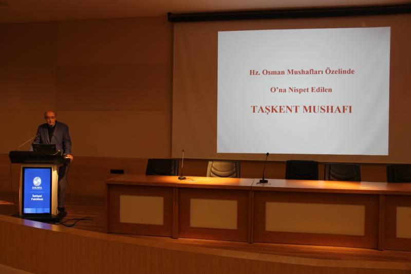 Fakültemiz Çarşamba Konferansları kapsamında, İstanbul 29 Mayıs Üniversitesi Mütevelli Heyeti Başkanı Dr. Tayyar Altıkulaç tarafından “Hz. Osman Mushafları Özelinde O’na Nispet Edilen Taşkent Mushafı” konulu bir konferans gerçekleştirildi.