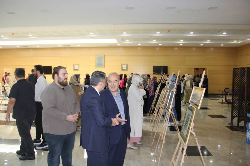 Fakültemiz İslam Tarihi ve Sanatları Bölümü öğretim elemanlarından Arş. Gör. Sümeyye Yaman ve Hattat Onur Yaman Koordinatörlüğünde öğrencilerimizin hazırladıkları Hat ve Ebru eserleri Fakültemizde sergilendi.