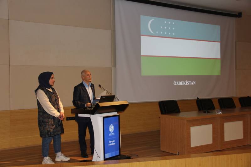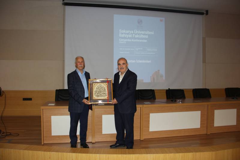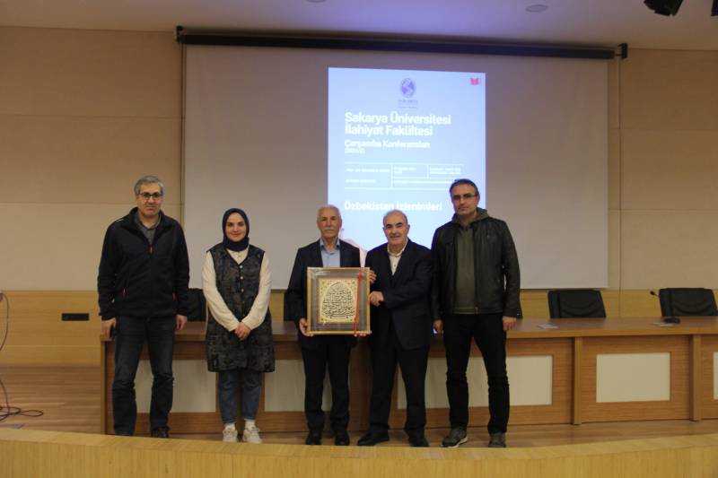 Fakültemiz Çarşamba Konferansları kapsamında Temel İslam Bilimleri Bölümü Kelam ABD öğretim üyesi Prof. Dr. Süleyman Akkuş ve doktora öğrencisi Edanur Özyılmaz tarafından “Özbekistan İzlenimleri” konulu konferans Konferans Salonumuzda gerçekleştirildi. Programa dekan yardımcılarımız Doç. Dr. Muhammed Ali Bağır ve Dr. Öğr. Üyesi Kübra Cevherli, fakülte hocaları ve öğrencileri katıldı. Sunucu Arş. Gör. Abdullah Arif Adalar’ın Prof. Dr. Süleyman Akkuş’un kısa bir biyografisini sunmasıyla başlayan program yaklaşık bir buçuk saat sürdü.