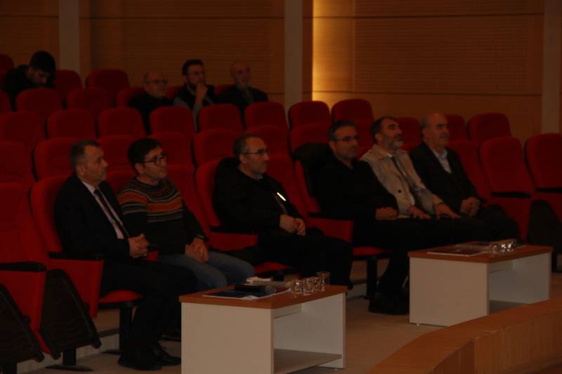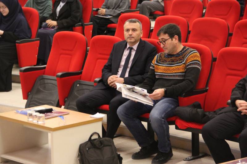 Konferans Salonumuzda düzenlenen ve sunuculuğunu Arş. Gör. Abdullah Arif Adalar’ın yaptığı programa, Dekanımız Prof. Dr. Hasan Meydan, Dekan Yardımcılarımız Doç. Dr. Muhammed Ali Bağır ve Dr. Öğr. Üyesi Kübra Cevherli, öğretim üyeleri ve öğrenciler katıldı. Programın girişinde Prof. Dr. Mahmut Hakkı Akın’ın özgeçmişi, Arş. Gör. Abdullah Arif Adalar tarafından dinleyicilere aktarıldı.