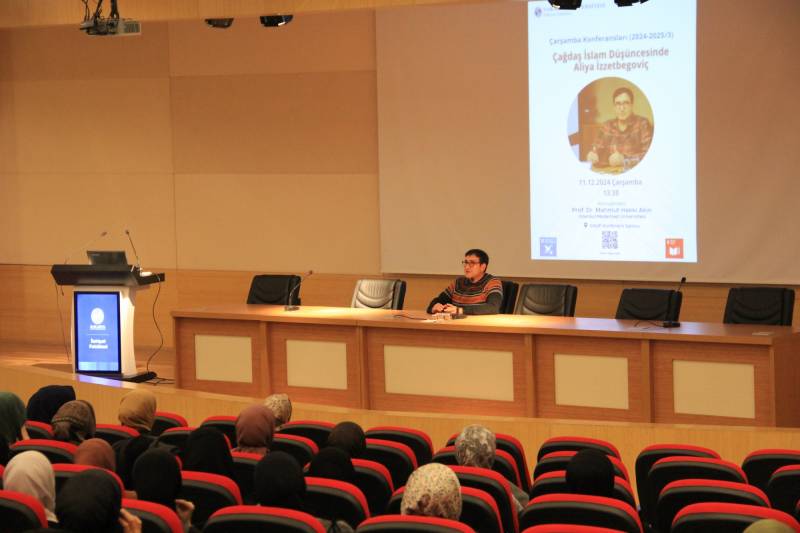 Fakültemizde Çarşamba Konferansları kapsamında İstanbul Medeniyet Üniversitesi öğretim üyesi Prof. Dr. Mahmut Hakkı Akın tarafından “Çağdaş İslam Düşüncesinde Aliya İzzetbegoviç” konulu bir konferans gerçekleştirildi.