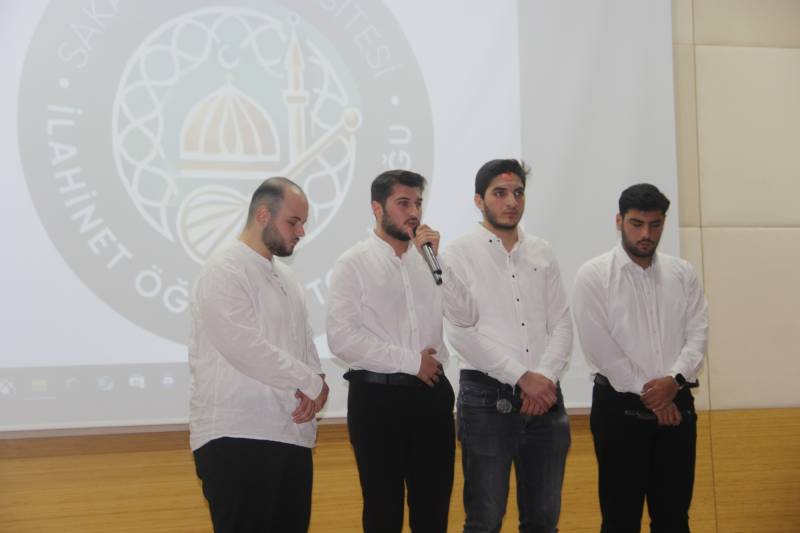 Program, Fakültemiz öğrencisi Murat Güvenç’in Kur’an-ı Kerîm tilavetiyle başladı. Devamında Fakülte öğrencimiz Gülbeyaz Arun’un şiir dinletisi yer aldı ve İlahinet Öğrenci Topluluğu tarafından Arapça ilahiler seslendirildi. Ardından Yusuf Yeşilbağ, Fatih Esen, Ömercan Müzenned tarafından “Şeytan ve Dindar Adam” isimli bir Arapça tiyatro oyununu sahnelendi. Öğrenci Elif Çakmak’in şiir dinletisi ile devam eden program, Arapça Eğitimi Öğrenci Topluluğu’nun (Mülteka Lugati’d-dad) tanıtım filminin izlenmesi ve Öğrenci Yunus Emre Ay’ın şiir dinletisinin ardından sona erdi.