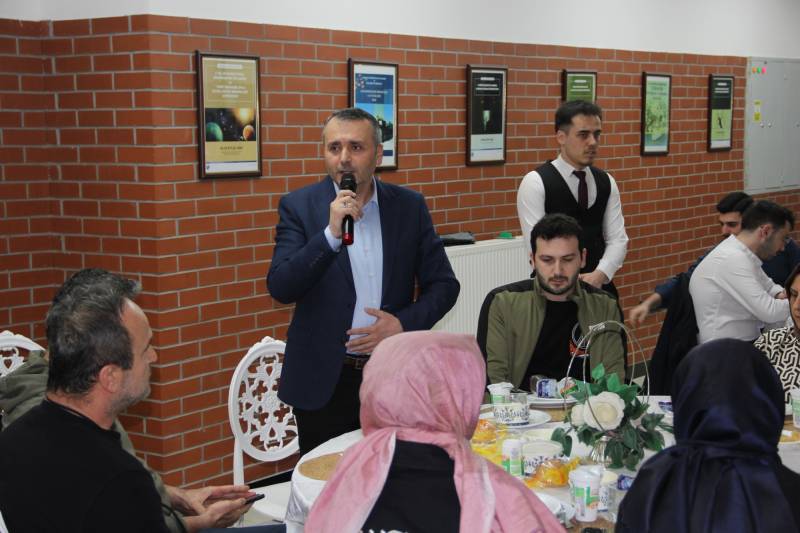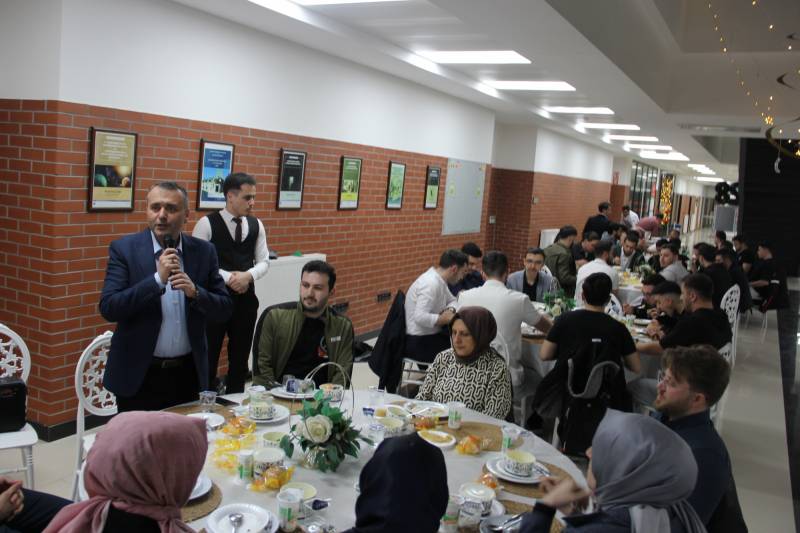 İftar öncesi Kur'an tilaveti ile başlayan programda kısa bir konuşma yapan Dekanımız Prof. Dr. Hasan Meydan iftar programına katılan tüm öğrenci ve hocalara katılımlarından dolayı teşekkür etti. Ayrıca iftar programını organize eden öğrenci temsilcisi Tahsin Önder ile organizasyon ekibine ve katkı ve desteklerinden dolayı SAÜ Kampüs Camii İmam Hatibi Erol Demir’e teşekkürlerini iletti. İftar programının bir nevi mezuniyet iftarı olarak planlandığını belirten Meydan öğrencilere mezuniyet sonrası hayatlarına dair iyi dileklerini iletti.