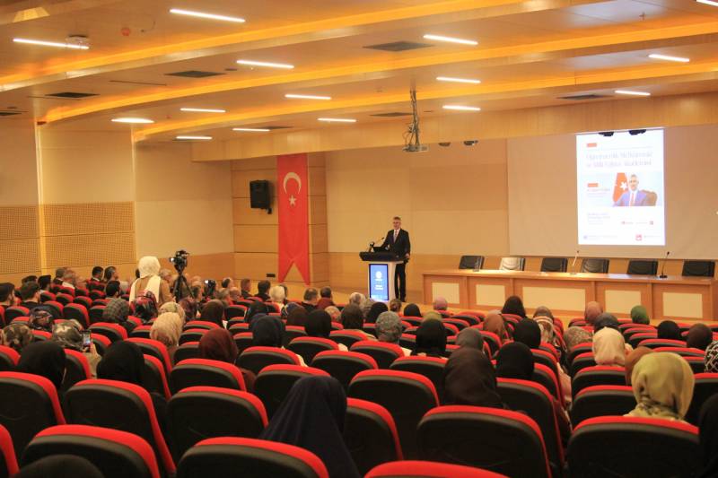 Konferansın ana konuşmacısı olan Milli Eğitim Bakan Yardımcısı Dr. Nazif Yılmaz ise, “Öğretmenlik Mefkuremiz ve Milli Eğitim Akademisi” başlıklı sunumunda, öğretmenlik mesleğinin derinlikli ve mefkure temelli bir yaklaşım gerektirdiğini ifade etti. İlahiyat Fakültesi mezunlarının yalnızca din hizmetlerinde değil, eğitimin her kademesinde çok yönlü bir sorumluluk üstlendiğini belirten Yılmaz, Kur’an ve sünnet merkezli bir öğretmenlik vizyonunun inşası gerektiğini vurguladı.