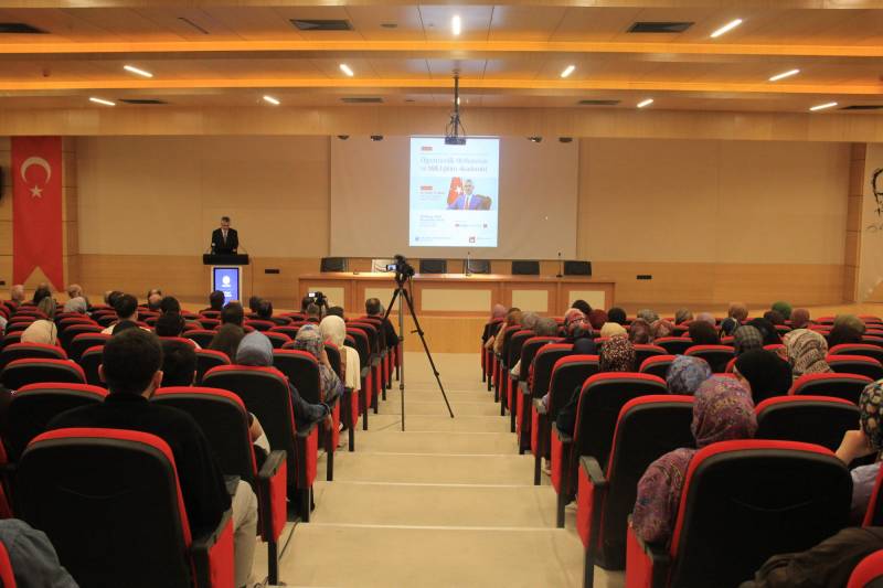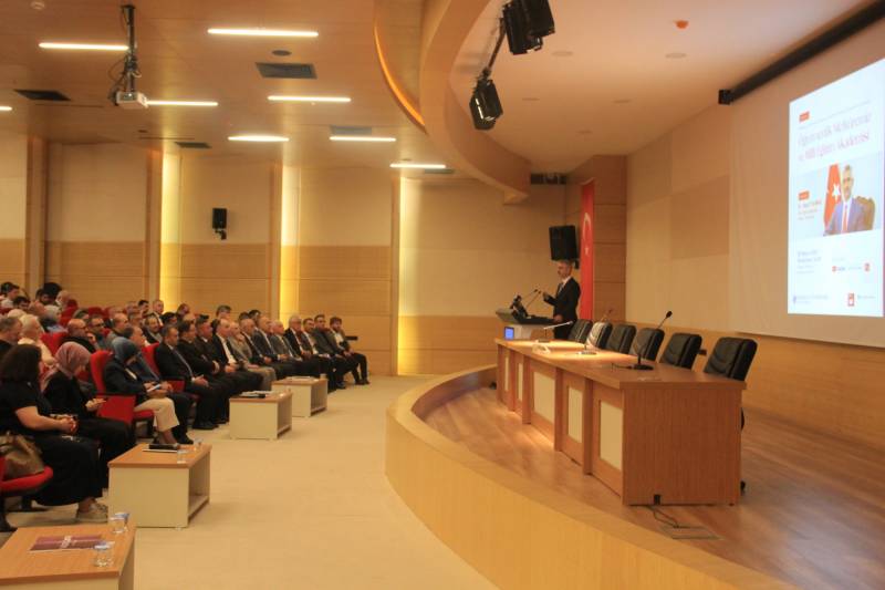 Programın açılışında konukları selamlayan Dekanımız Prof. Dr. Hasan Meydan, fakültenin akademik ve proje temelli başarılarından söz etti. Dekanımız Prof. Dr. Hasan Meydan, özellikle öğrenci projelerinde Türkiye genelinde elde edilen birinciliğe ve yürütülen TÜBİTAK projelerine vurgu yaparak, nitelikli eğitimi ve bilimsel üretimi bir bütün olarak gördüklerini ifade etti. Fakültenin hedefinin yalnızca teorik bilgiyle yetinmeyip, toplumun inanç ve etik temelli meselelerine çözüm önerileri geliştiren bir ilmi anlayışı yaygınlaştırmak olduğunu belirtti. Öğrencilerin büyük kısmının Milli Eğitim camiasında görev alacak olması dolayısıyla bu konferansın büyük bir fırsat sunduğunu dile getiren Prof. Dr. Hasan Meydan, Bakan Yardımcısı Dr. Nazif Yılmaz’ın öğretmenlik mefkuresini temsil eden en uygun isimlerden biri olduğunu vurguladı.