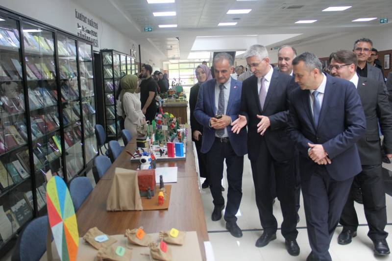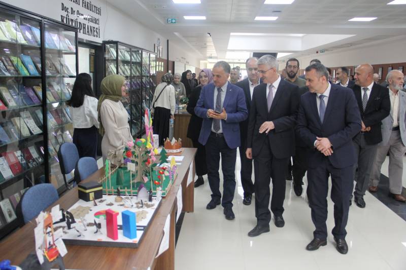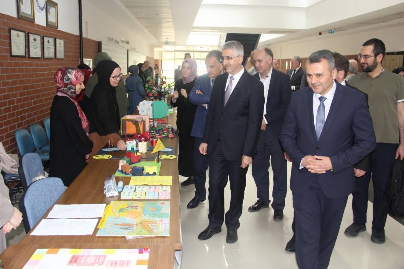 Bakan Yardımcısı Sayın Dr. Nazif Yılmaz samimi bir ortamda gerçekleşen programda katılımcıların sorularını yanıtladıktan sonra İlahiyat Fakültesi öğrencilerinin Öğretim Teknolojileri ve Materyal Tasarımı dersi kapsamında hazırladıkları ders materyallerinin yer aldığı sergiyi ziyaret ederek hazırlanan öğretim materyalleri hakkında öğrencilerle sohbet etti. Öğrencilerin özgün materyal tasarımları, Sayın yılmaz ve katılımcılar tarafından büyük beğeniyle karşılandı.